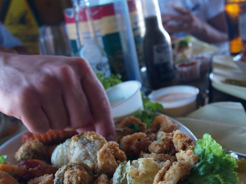 Justin and I decided to share the fried food platter and a dozen oysters. Oysters: